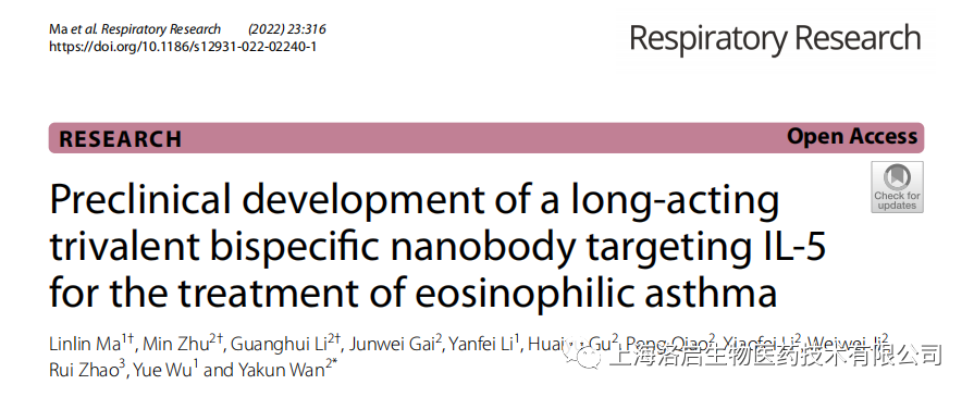 近期,由公海555000官网生物主导开发的长效IL5纳米抗体,可用于治疗嗜酸性粒细胞性相关疾病,包括嗜酸性哮喘(EOS-Asthma)、高嗜酸性粒细胞综合征(HES)和嗜酸性肉芽性多血管炎(EGPA)等。相关研究成果发表于《Respiratory Research》杂志,题为“Preclinical development of a long-acting trivalent bispecifc nanobody targeting IL-5 for the treatment of eosinophilic asthma”(IF=7.162)。本文通讯作者为上海公海555000官网生物万亚坤博士。